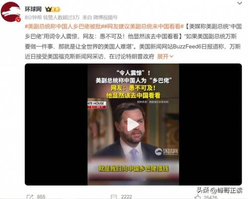 而现在,万斯却公然用乡巴佬来侮辱中国,这不是自砸招牌吗?