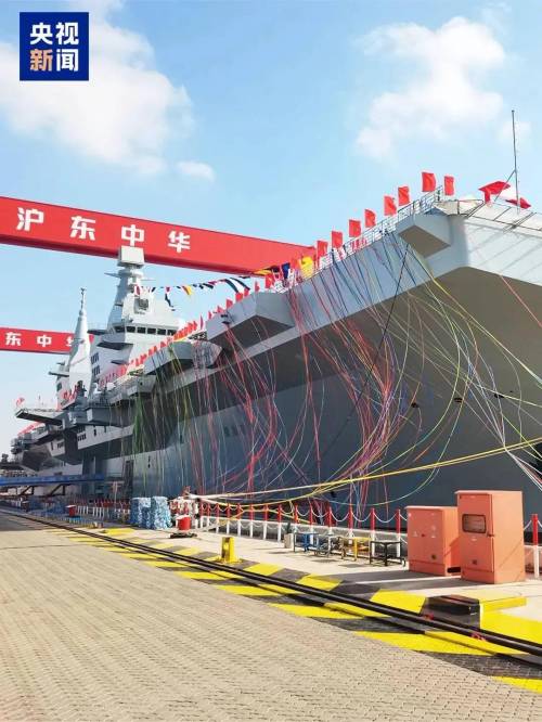 “四川舰”其实在2024年年底就已经插旗一次,那一次正是完成主体结构下水!时隔半年多后,又被拍到插满红旗,预示着“四川舰”将首次进行海试!