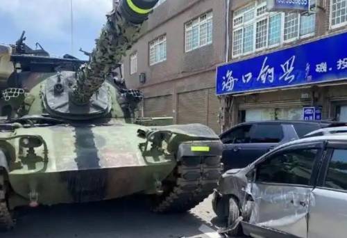 自“汉光”军演开始以来,台军每天都会出现各类事故。7月13日,一辆CM-11型坦克在道路起步时操作失误,不慎撞向了对面停着的小客车,该事故使得小客车的左侧车头及驾驶座车门损毁,但幸好现场无人受伤。