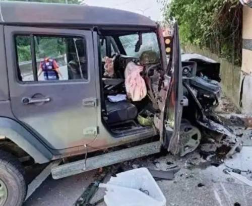 7月12日晚,一辆台陆军军车不知为何撞向了路边的石墩,该事故导致路军车车头当场碎裂,车上的3名官兵都有不同程度的受伤,车内一片凌乱,但所幸伤者没有生命危险。