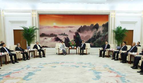就在同一天,洪秀柱的另一个动作再次震撼岛内,她在人民大会堂,与全国政协主席王沪宁会面。