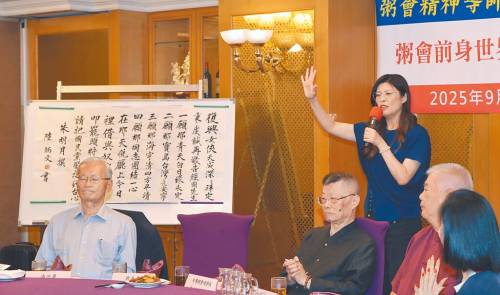 国民党主席候选人郑丽文(右后)9月29日出席纪念粥会精神导师吴稚晖诞辰160周年活动