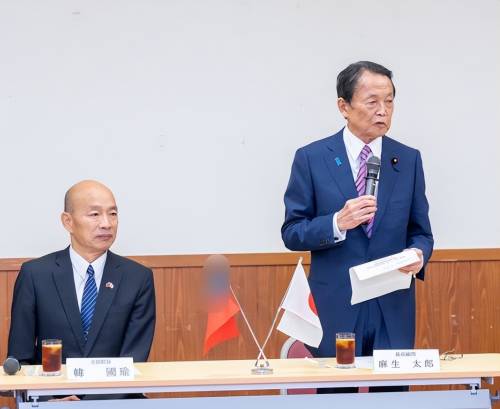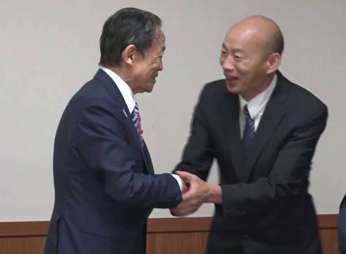 9月25日下午,韩国瑜一行刚抵达东京就马不停蹄地去跟日本前首相、自民党最高顾问麻生太郎见面。麻生太郎是仇华分子,他曾于2008年出任第92任日本首相,并在安倍内阁时期担任副首相兼财务大臣,是日本政坛极具影响力的右翼代表人物。