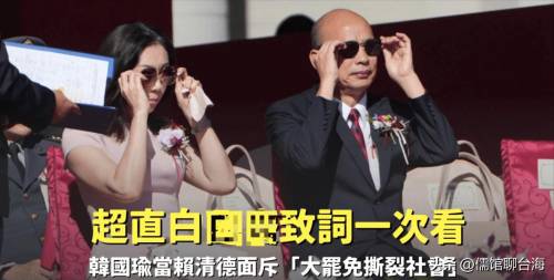 韩国瑜庆典致辞:言辞尖锐,政治色彩浓厚