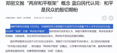 早在1月29日,郑丽文接受专访时就通知全岛,她声称上半年会优先访问大陆,也就是先解决两岸问题,再去考虑访美的事情,还表示2028年国民党“执政”后推“两岸和平框架”!