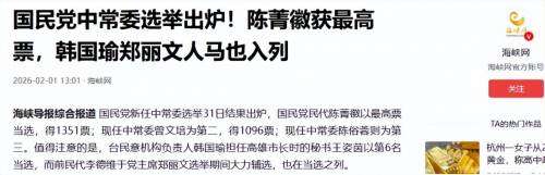 1月31日,国民党中常委改选选举出炉,1351票比上1096票,民代陈菁徽以高票当选票王,现任中常委曾文培紧跟在后。