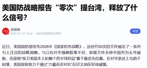 对于美国而言,2026年《国家防务战略》未将中国视为“最主要威胁”,也未提及台湾,此信号十分明确,之前支持台湾的举措正在收紧,台独想要依靠美国已变得不可能。