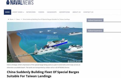 美国军事专家萨顿最近在《海军新闻》上刊文称,中国正在为台海建造一种新型特种驳船。