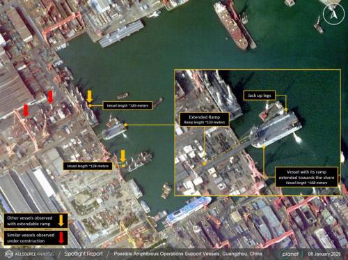 因为开源情报显示,目前已经生产出的海陆连接器只有3-5艘,数量并不算多。虽然外界也不清楚解放军对这类舰船的需求到底是多少,但考虑到潜在的对台军事行动将会是自诺曼底登陆以来,人类组织过的最大规模登陆行动。像海陆连接器这种对解放军十分重要,同时还可能在战时遭受敌军针对打击的配套舰船,数量肯定是不能少的。