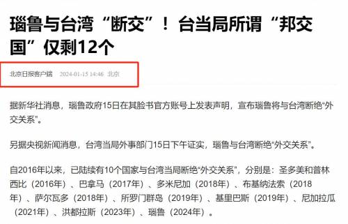 (信源:北京日报客户端2024年1月15日—瑙鲁与台湾“断交”!台当局所谓“邦交国”仅剩12个)