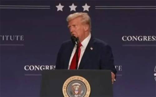 特朗普可是光膀子就上,生吞活剥。他在讲话时,台下的共和党议员和内阁官员,一片掌声和欢呼声。