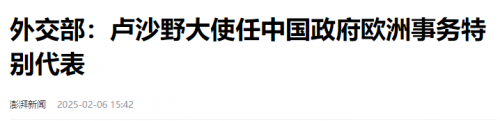“中国政府欧洲事务特别代表”负责统筹协调中国与欧洲国家及欧盟机构的全方位事务,涵盖政治、经济、安全等多领域,其职能范围远超单一国家大使的职责?——中国政府欧洲事务特别代表属于副部级岗位,驻法大使通常为正司局级(大使级),也就是说卢沙野从正司局级晋升至副部级。