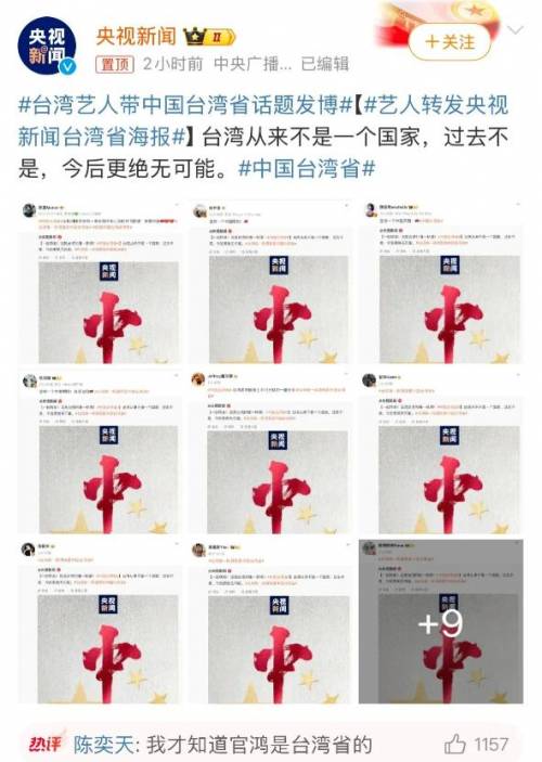 中国台湾省五个字,可以说直接把民进党当局给整破防了,面对有一定影响力的台岛艺人纷纷自觉转发央视必将统一的海报,台“陆委会”坐不住了,第一时间站出来发声,表示对此予以“最严厉的谴责”,甚至还表示会对这些支持促统艺人进行10万元到50万元新台币不等的处罚。