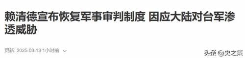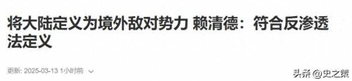 3月13号上午,赖清德召开安全会议,会上直接摊牌,称大陆为“境外敌对势力”,并一口气提出17项应对大陆“威胁”的安全策略。