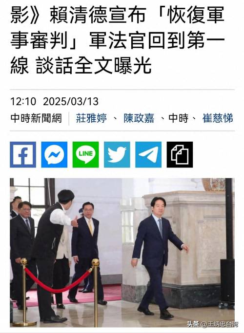 赖清德宣布恢复过去民进党自己推翻的军事审判制度。