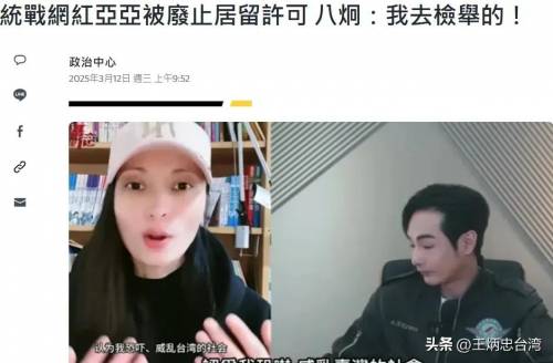 民进党侧翼八炯检举宣扬统一的陆配网红亚亚,亚亚惨遭“驱逐出境”、强迫离台。