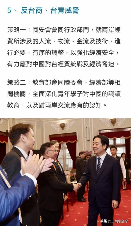 再者,这其实就是一连串组合拳,为民进党正在搞的“大罢免”添柴加火,想复制2019年蔡英文靠“抗中保台”连任,如今再为赖清德保驾护航,调动青鸟的“抗中”激情。说白了,台湾艺人转发大陆反“独”官宣,台青、台商在大陆拿居住证方便生活,陆配网红在网路上发表促统言论,这些都不是现在才发生的事,但赖清德刻意拿来炒作,作为他进一步扩大“绿色恐怖”、深化“台独”意识形态的题材,这些完全是他主动拉高调子,遂行他去年上任前就预告的“洗涤人心”。