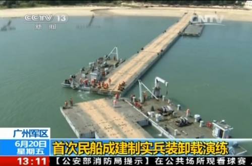 在不太靠近海岸的情况下,滚装/滚卸渡轮(或称“滚装”渡轮)可以停靠在这些人工港口卸货:装甲车和货车可以通过悬挂的堤道到达陆地。中国造船产能占全世界一半以上,这些船舶建造对中国来说易如反掌,当这些装备都建成后那一切都结束了。