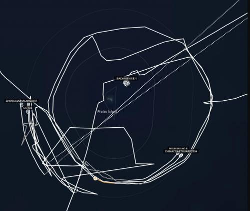 来自AIS船舶定位信息显示,在3月11日至14日期间,双方4艘舰船就围绕着东沙群岛进行了长达70多个小时的对峙和“紧贴式”追逐。在此过程中,大陆海警3304舰多次进入距离东沙环礁约12海里,逼近躲在浅滩不敢动弹的2艘岛内拖船。而台海巡的2艘巡逻舰也是紧追不舍,像老母鸡一样,时刻保护着2艘岛内拖船。