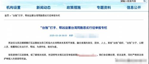 另外笔者还注意到,就在3月26日早上,国台办还公布了一则重要的消息,国台办官方网站已经推出了“台独”打手、帮凶迫害台岛同胞恶劣行径举报专栏!