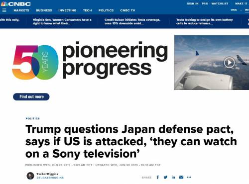 特朗普:日本遭袭,我们要拼命保护,美国遭袭,他们却可只在索尼电视上看,言外之意是想要日本加钱