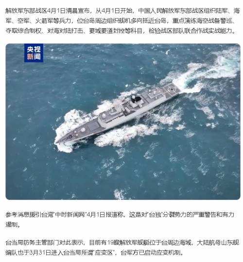 4月1日一早消息传开,19艘舰艇,外加海警公务船,分成好几拨,整个台岛围个水泄不通,北部、东部、西南,连西侧海峡都占满了位置。