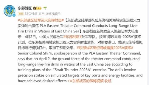 演习期间,解放军在东海实施了远程火力实弹射击演练,对敌重要港口、能源设施等模拟目标进行了精确打击,演习取得了圆满成功。有意思的是,和昨天的声明一样,东部战区继续“贴心”附带了英文版的声明,就差明着说是给美国人看的了。