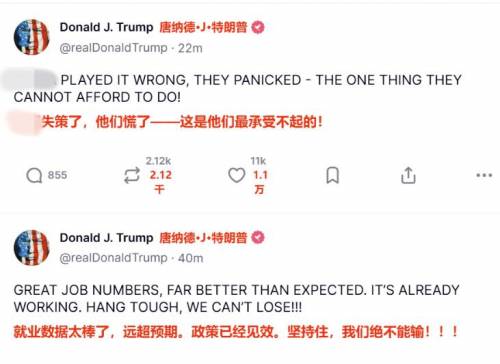 “中国慌了?”,当地时间2025年4月4日,美国总统特朗普在中国宣布对美国商品加征对等,34%的关税后,发帖显怒气,特朗普声称:“中国错了,他们惊慌失措”,“这是他们最不能承受的后果。”,特朗普声称:“所有进入美国并投资大量资金的投资者,我的政策永远不会改变。现在是发财的绝佳时机,比以往任何时候都更富!” ,“坚持住,我们绝不能输!”不过,目前美国各大媒体,包括美国经济走势,与美国总统特朗普说的话,截然相反。