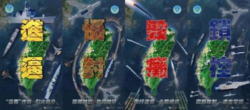 进逼,解放军陆海空三军多个方向围住台湾岛,压缩“台独”势力的活动空间。慑封,解放军通过海空巡防的方式,台军无法出岛,只能够坐以待毙。瘫痪,解放军的空中打击能力与导弹、火炮,对于岛内的通讯、能源、电力以及“台独”指挥系统进行精准打击。锁控,解放军对于台湾岛进行海空一体的全面封锁,“台独”分子无法逃亡海外,外部势力也无法进入台湾岛。
