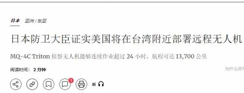 美国目前仍不舍得放弃利用台湾这个棋子,依然试图加码美军在台海的力量,要求日本、韩国甚至台岛增加军费,也对北约的成员国施加压力,他希望借助“盟友”的力量,继续遏制中国大陆的发展,遏制大陆的军力发展企图。北约秘书长周二的时候,在日本面对媒体时表示:中国的军力增长速度“让人震惊”、“对中国不能有天真的想法”。日本也觉得,在这样的情形下,如果台海爆发了武力冲突,冲绳甚至日本本土都会遭受波及,正在计划购买更多的攻击型无人机,加强“防御”。