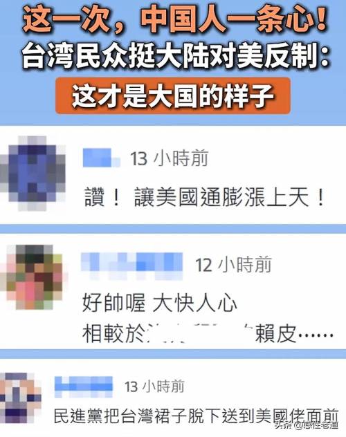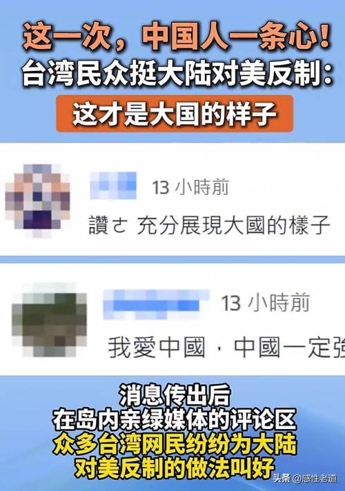 在全球经济紧密相连的当下,一场没有硝烟的贸易战争正激烈上演。美国凭借其经济霸权,肆意挥舞关税大棒,妄图在贸易领域压制中国,然而,这一霸权行径不仅未能得逞,反而激起了中国人民的强烈反抗,更令人振奋的是,台湾同胞纷纷站出来,力挺大陆的反制措施,从文艺界到学术界,凝聚起了一股跨越海峡的支持力量。