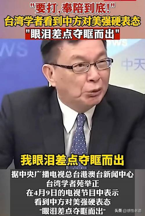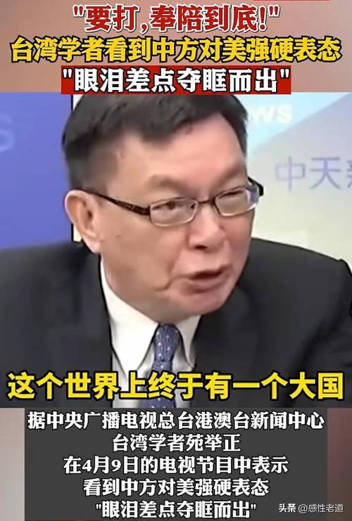 而台湾学者们也纷纷加入支持大陆的行列。台湾大学教授苑举正在一档节目中,谈及大陆对美强硬表态时,情绪激动,眼眶泛红,险些落泪。他感慨道:“当我听到中方说出‘要打,我们随时奉陪’这句话时,内心无比震撼。这是百年来首次见证祖国在强权面前昂首挺胸!这不仅是经济层面的反制,更是民族精神的彰显,让我们海外游子倍感自豪。”
