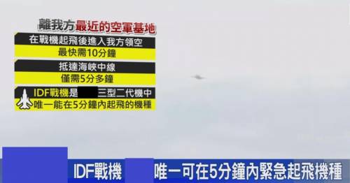 因为解放军在沿海的机场可以做到5分钟突破台湾海峡所谓“中线”,10分钟进入台本岛上空,所以台军在澎湖部署了三大主力战机中唯一可以做到在5分钟之内起飞的战机IDF战机。