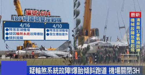 这是澎湖一周内第二架同型战机发生爆胎事故。