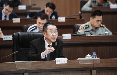 4月21日,台防务部门负责人顾立雄主持“汉光41号”计算机辅助指挥所演习(CpX)总检讨会议