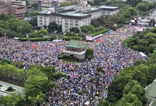 这次抗议集会不仅是普通民众的自发行动,更是由国民党多位要员领衔,包括国民党重量级人物朱立伦、马英九以及韩国瑜,还有台民众党人士也参与。