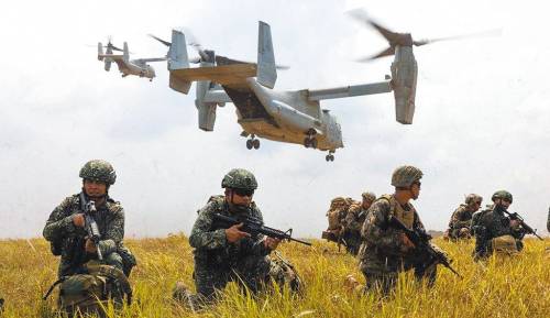 图为美国与菲律宾两国海军陆战队进行双边训练。