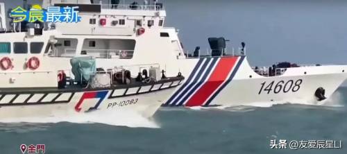 突然驶入的福建巡逻海警船,让金门方向的台军恐慌不已,紧急出动四艘海巡船伴航监视,期间双方接触的距离小于20米,眼见大陆方向朝着既定目标进行巡逻