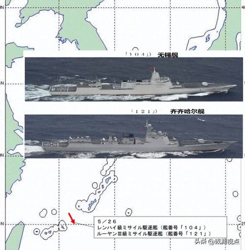 首先,据日本防卫省“统合幕僚监部”5月27日消息:5月26日下午18时,日本海上自卫队侦测到解放军海军1艘055型万吨驱逐舰“无锡”舰、1艘052D驱逐舰“齐齐哈尔”舰通过宫古海峡南下进入西太平洋,目标台湾东部海域。