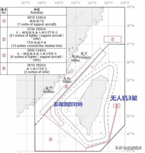据台“防务部门”最新发布的台海周边海空域动态显示: