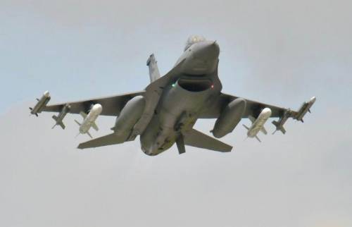 【台军F-16V战斗机挂载2枚鱼叉导弹】