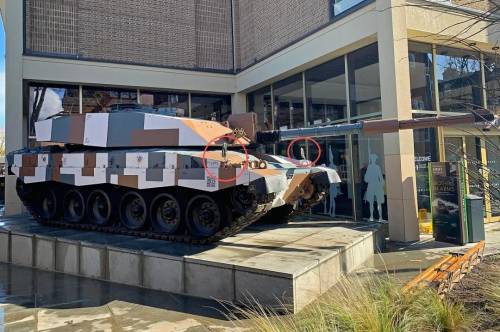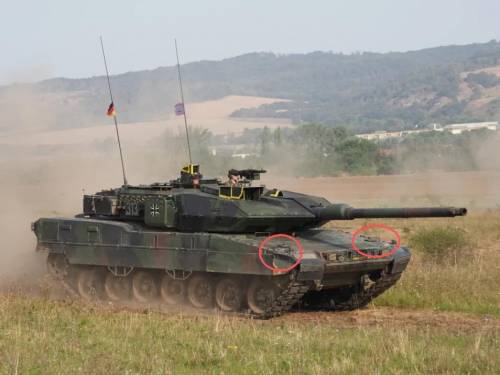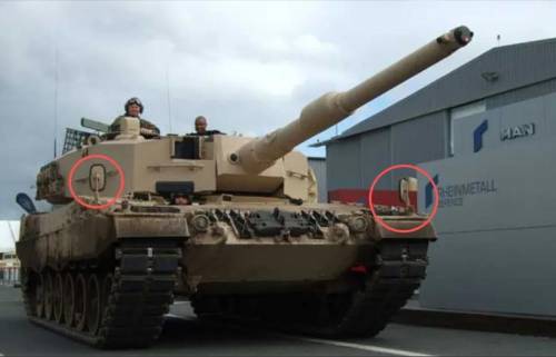 ▲安装了后视镜的豹2坦克,可以明显看出会阻挡火炮射界