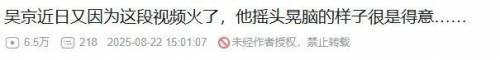 根据我在网上的观察,最开始主要是女性群体吐槽吴京在采访中,用带着极度自信的表情和姿态,摇头晃脑的说话,实在太中年油腻、大男子主义。