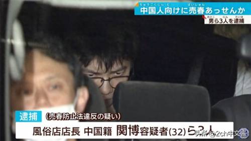 据日本《产经新闻》9月17日报道,17日,日本大阪府警生活安全特e搜查队宣布逮捕大阪市西淀川区中岛一家风俗店的店长关博等三名相关人员,他们涉嫌违反《卖春防止法》,让日本女性向中国男性卖春。据报道,关博否认了这些指控,称“我没有指示这些女孩(从事卖春活动)。”