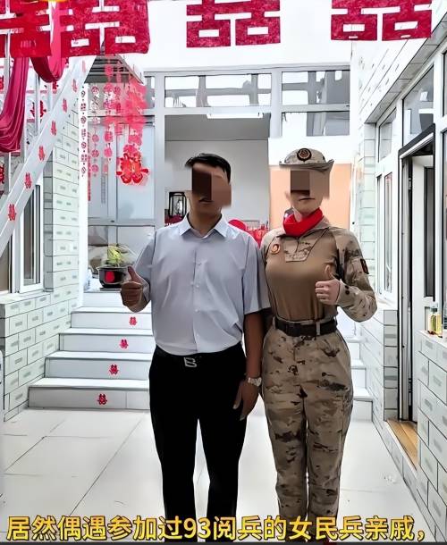 这位和女民兵合影的网友在发出合照时表示非常骄傲,还称这是“喜上加喜”。