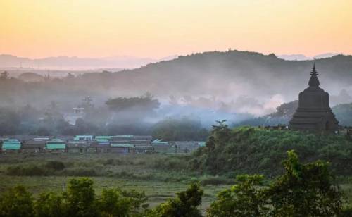 在若开邦北部邦纳均镇的一个小村庄,记者穿过泥泞的土路与成片的绿色田野,来到一间简陋的屋前。防水布围起的帐篷里,一位少女正对着一面六英寸宽的小镜子仔细化妆。