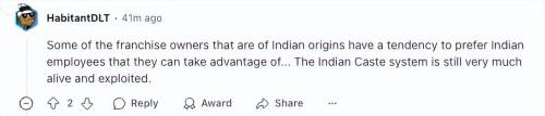 加拿大网友发现,这家加盟店的老板在不久前刚刚换成了印度裔,然后不断地清理白人员工,换上印度人。