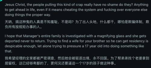 加拿大网友认为,这名17岁少女之所以成为目标,是因为那个阿三经理的“牌”用光了,那4名与他配合的加拿大女子短期内无法离婚再“就业”。