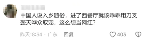 吃几口饭,还特么的吃出优越感来了!还“西餐高级感”,你这么恬不知耻,你的老祖宗们知道吗?