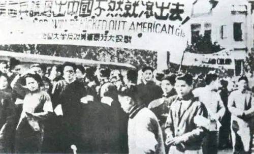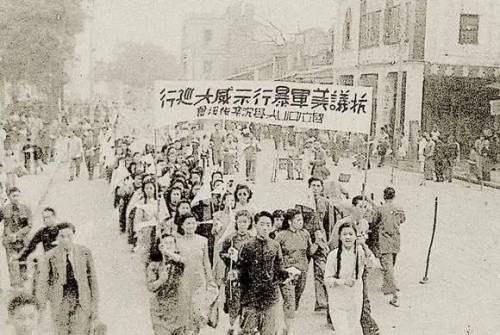 12月30日,北大、清华、燕京大学师生们于下午1点开始游行,要求“严惩凶手,美军滚出中国”,加上市民,共有3万多人。